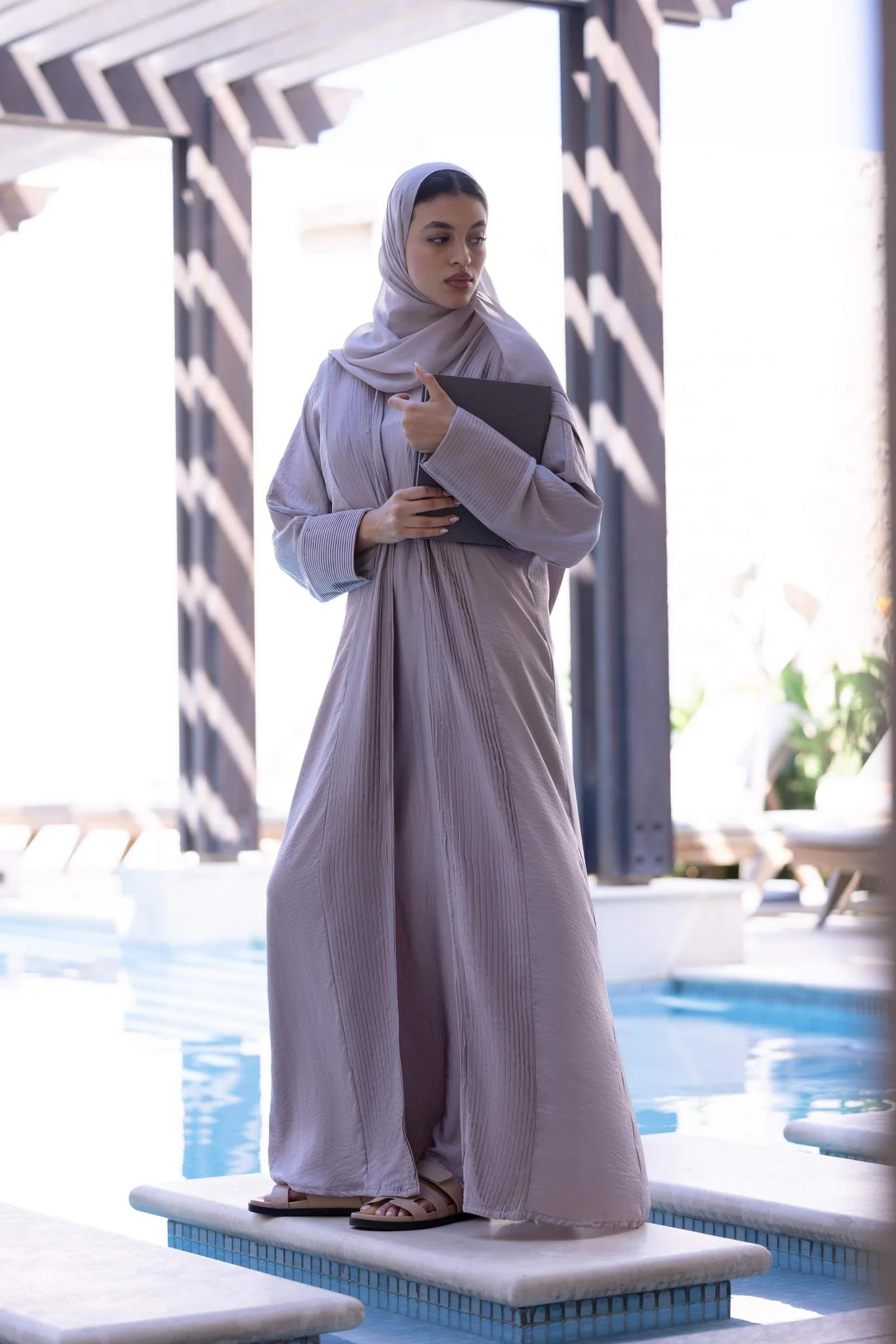 Includes: Abaya, slip dress, hijab